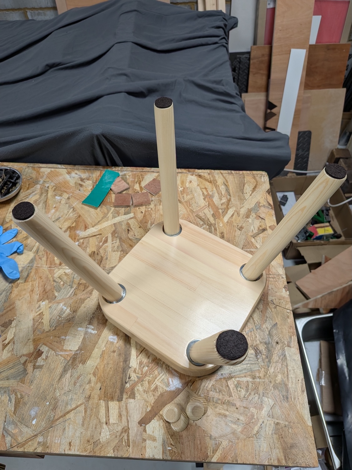 At this point, all the guide pieces can be removed and the stool should sit flat on the table.